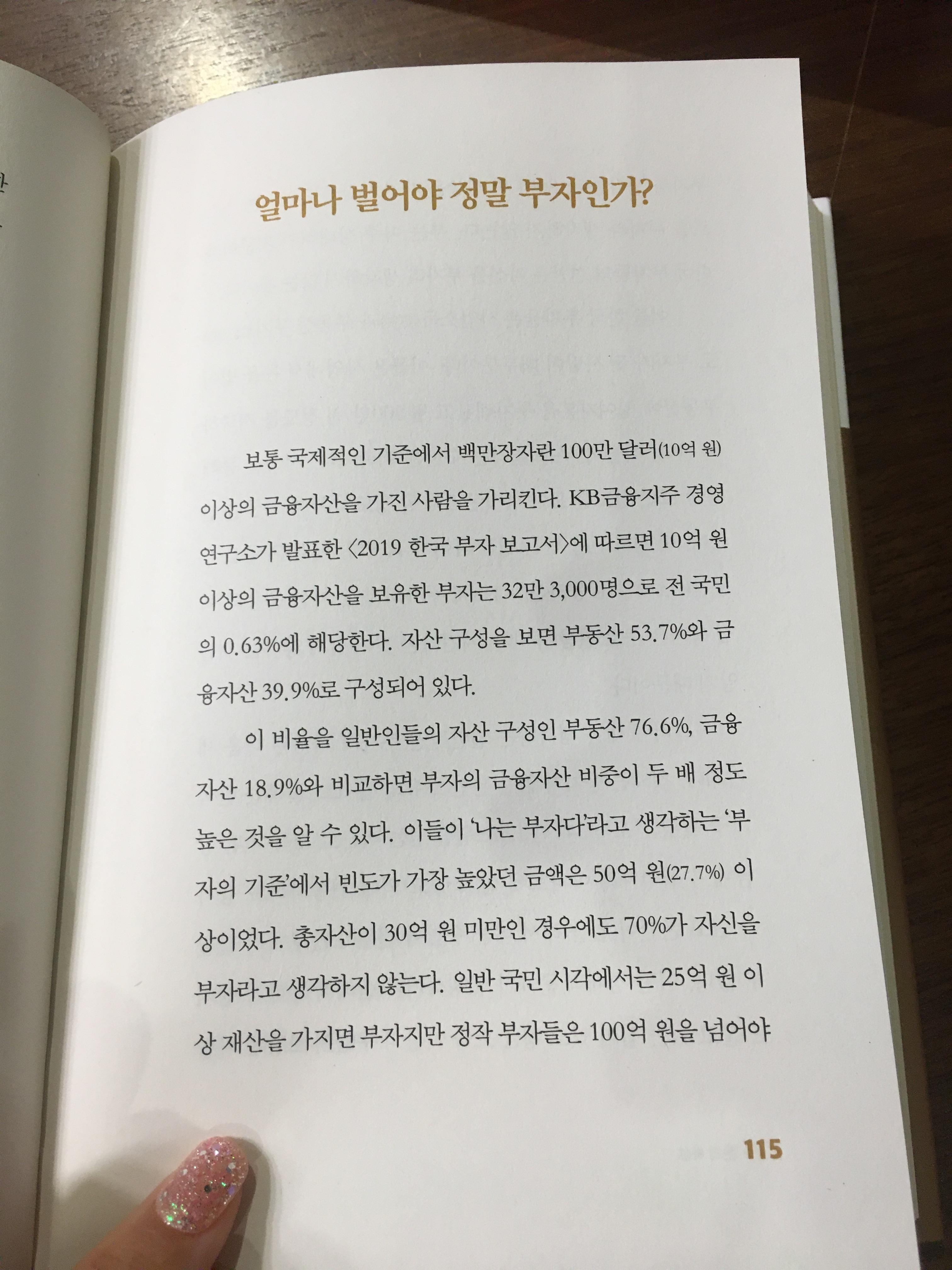 부자의 정의가 나오는데, 최근엔 부자의 기준에서 가장 빈도가 높은 금액은 50억원이라고 하네요~!
