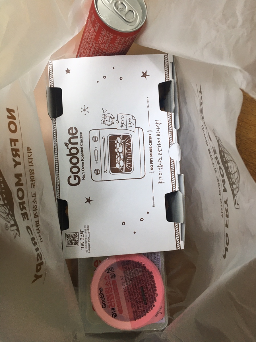 그냥 닭 자체만 먹어도 맛있는 것두 쉽지 않은 데 .. 그런 점에서는 높이 평가하고 싶어요! 굽네치킨은 약간 짠맛이 강한 거 빼고는 ㅋㅋ 정말 닭만 먹어도 맛있거든요~ 다만 외식하는 느낌보다는 뭔가 집에 좋은 요리사가 닭을 만진 기분이랄까요 ㅋㅋㅋ 뭔가 집에서나 흔히 먹을 수 없는 맛은 아니고 집밥을 자주 먹는 저에게는 뭔가 특별한 자극은 조금은 부족한 게 이게 튀김밀가루 맛이 강하지 않고, 치킨자체에 조미된 맛이 막 강렬하고 인상적인 느낌은 아니라서 그런 건지 ㅋㅋㅋ