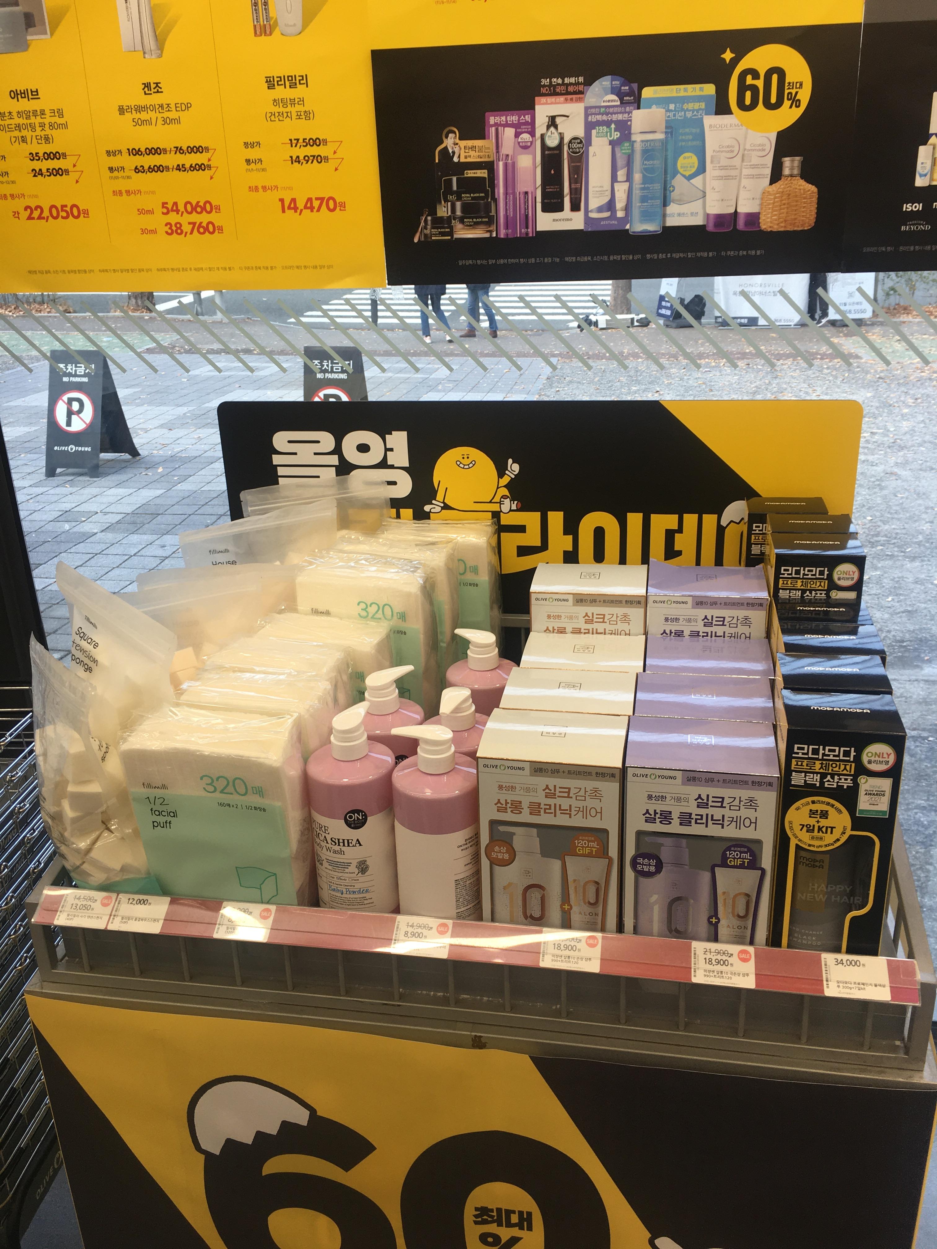 이게 세일을 해도 매장가가 다른 평소 온라인가보다 저렴한 경우가 별로 없는 거 같아서 올리브영은 매점가가 너무 비싼 느낌이거든요~ 블프할인해야지 그나마 살 의향이 생기는 정도랄까요;;