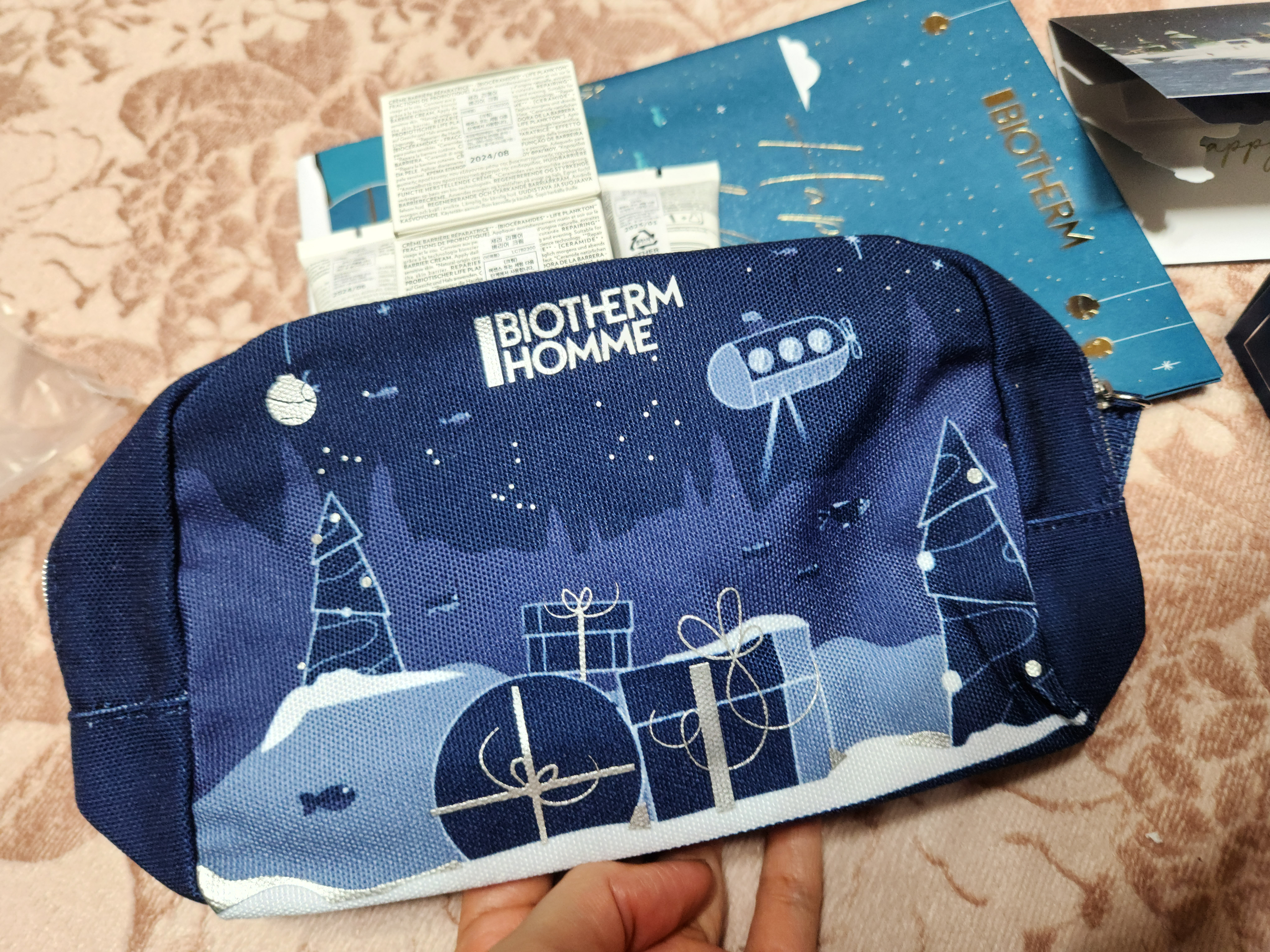 선물받은 비오템 화장품 세트 간단 언박싱 해볼게요~~^^ 원래 쓰던 브랜드라서 사용감은 생략하고 구성부터 일단 항공뷰 갑니다ㅋㅋ 종이봉투에 크리스마스 시즈널 입체카드까지 뭔가 풍성해보이지 않나요? ㅎㅎ