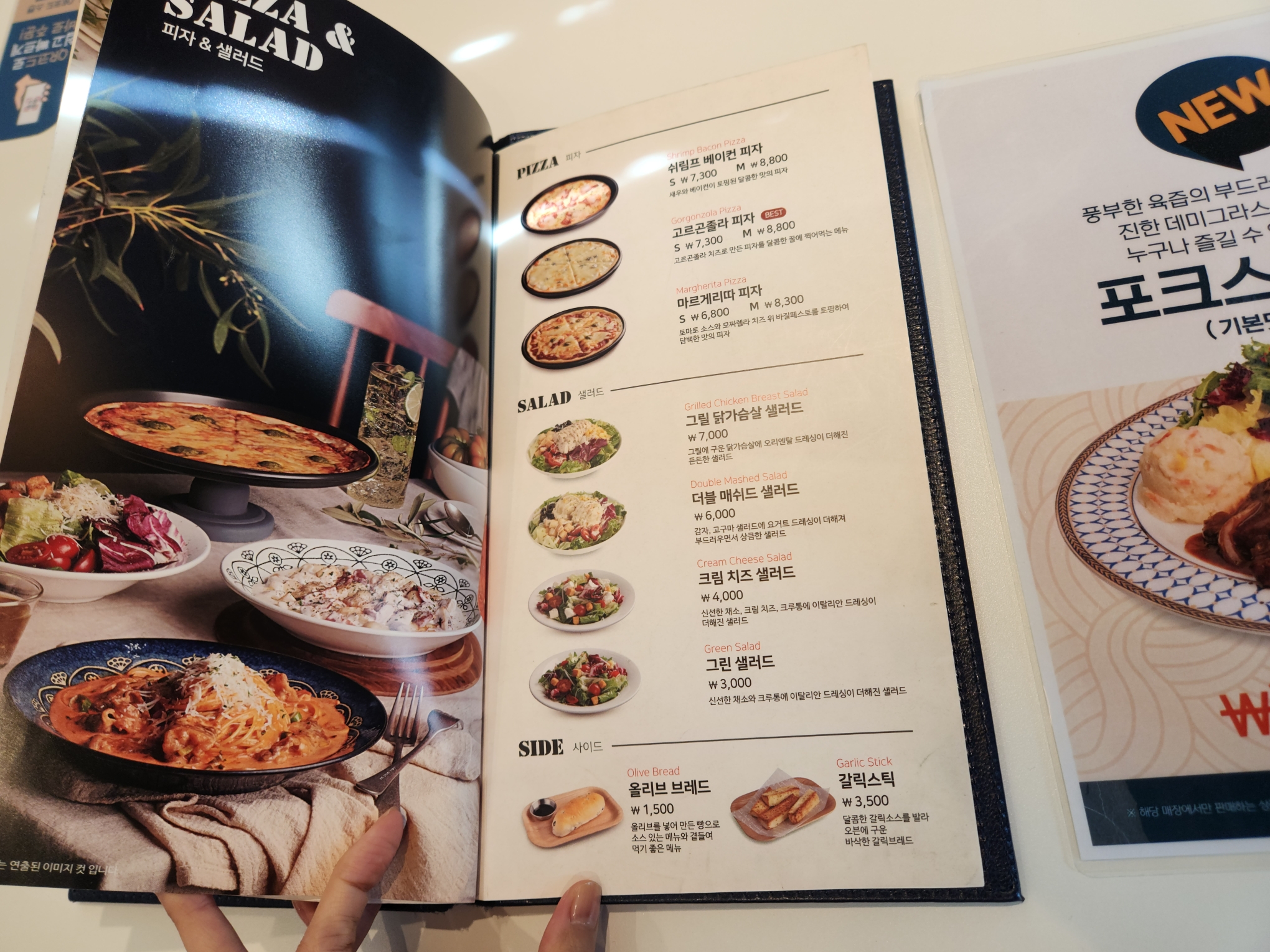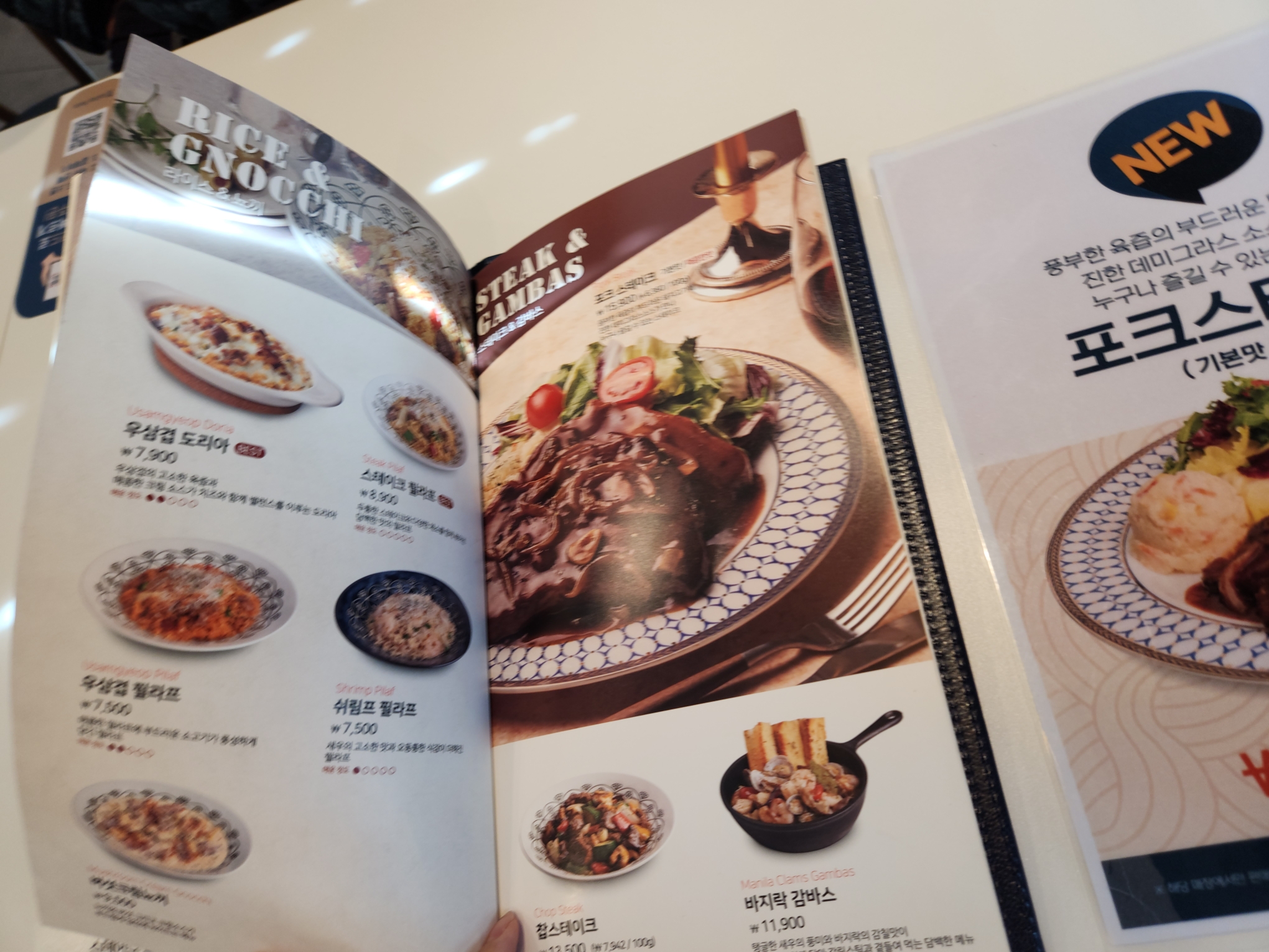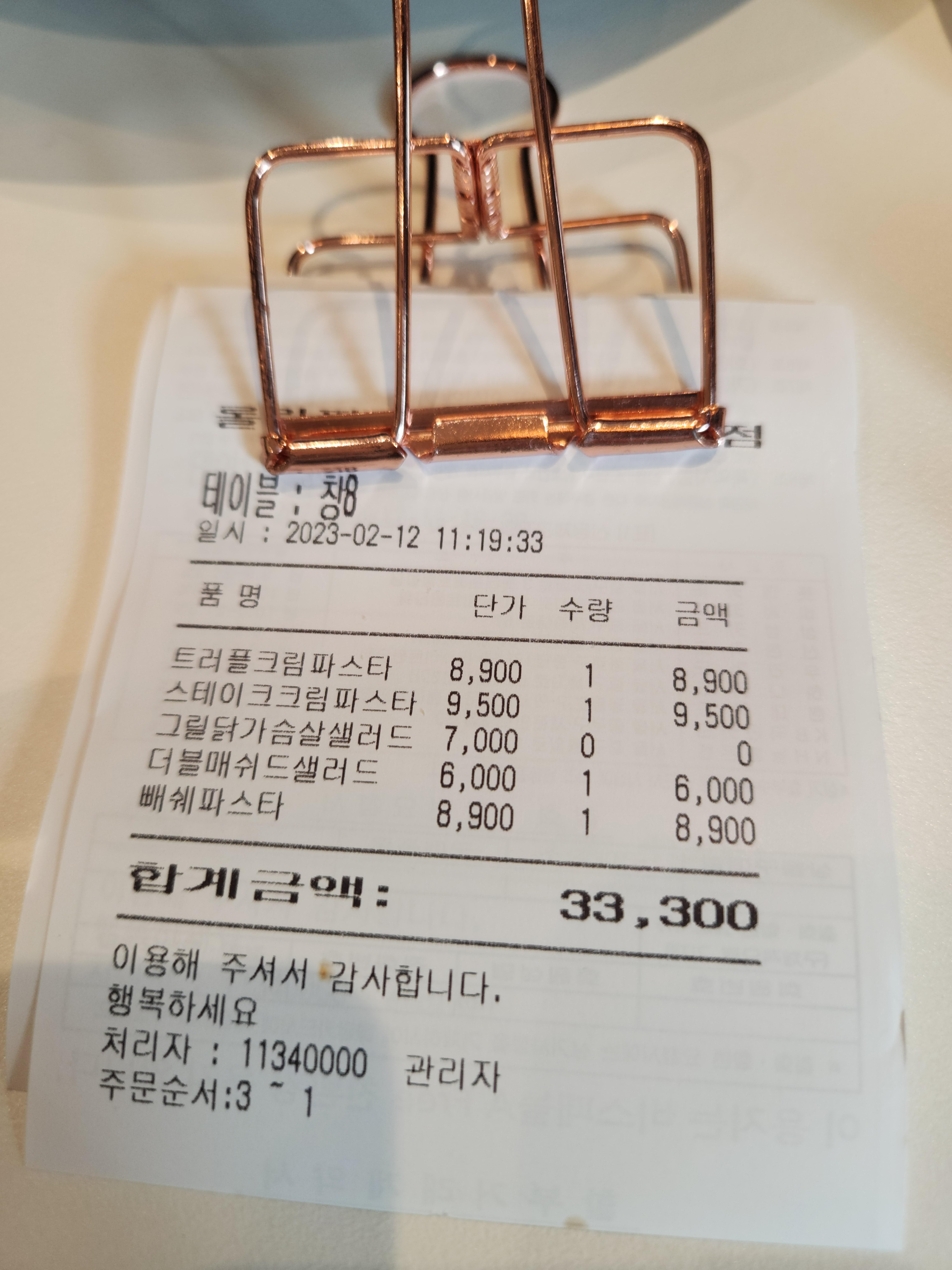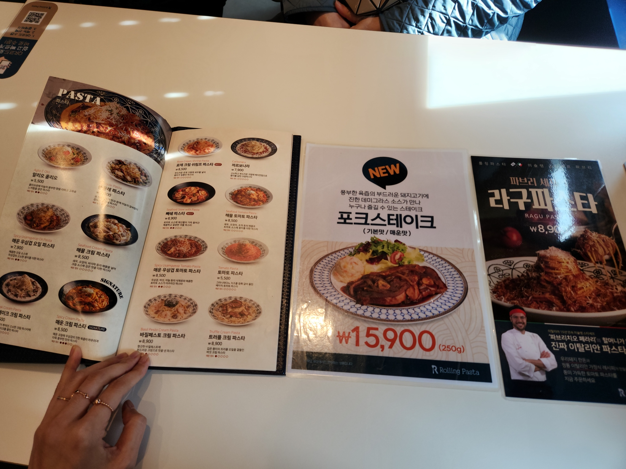 여기 잘 보면 큐알코드로 주문해달라고 한 거도 스맛한 거 있죠~ 하지만 성격급한 저는 이런거 할 여유없이 직원분께 주문합니다. 트러플 크림, 빼쉐, 스테이크크림 파스타, 그리고 포테이토 샐러드까지!! 주문완료!!