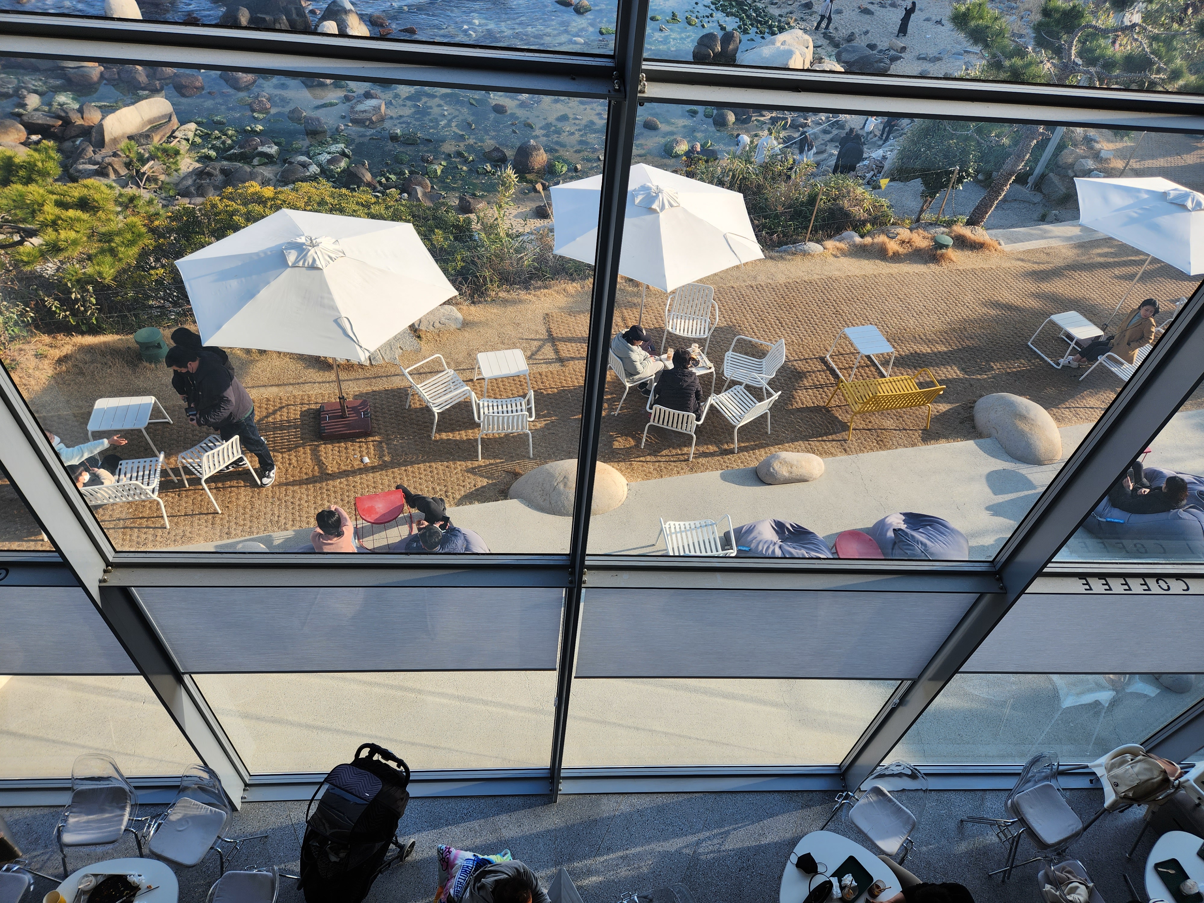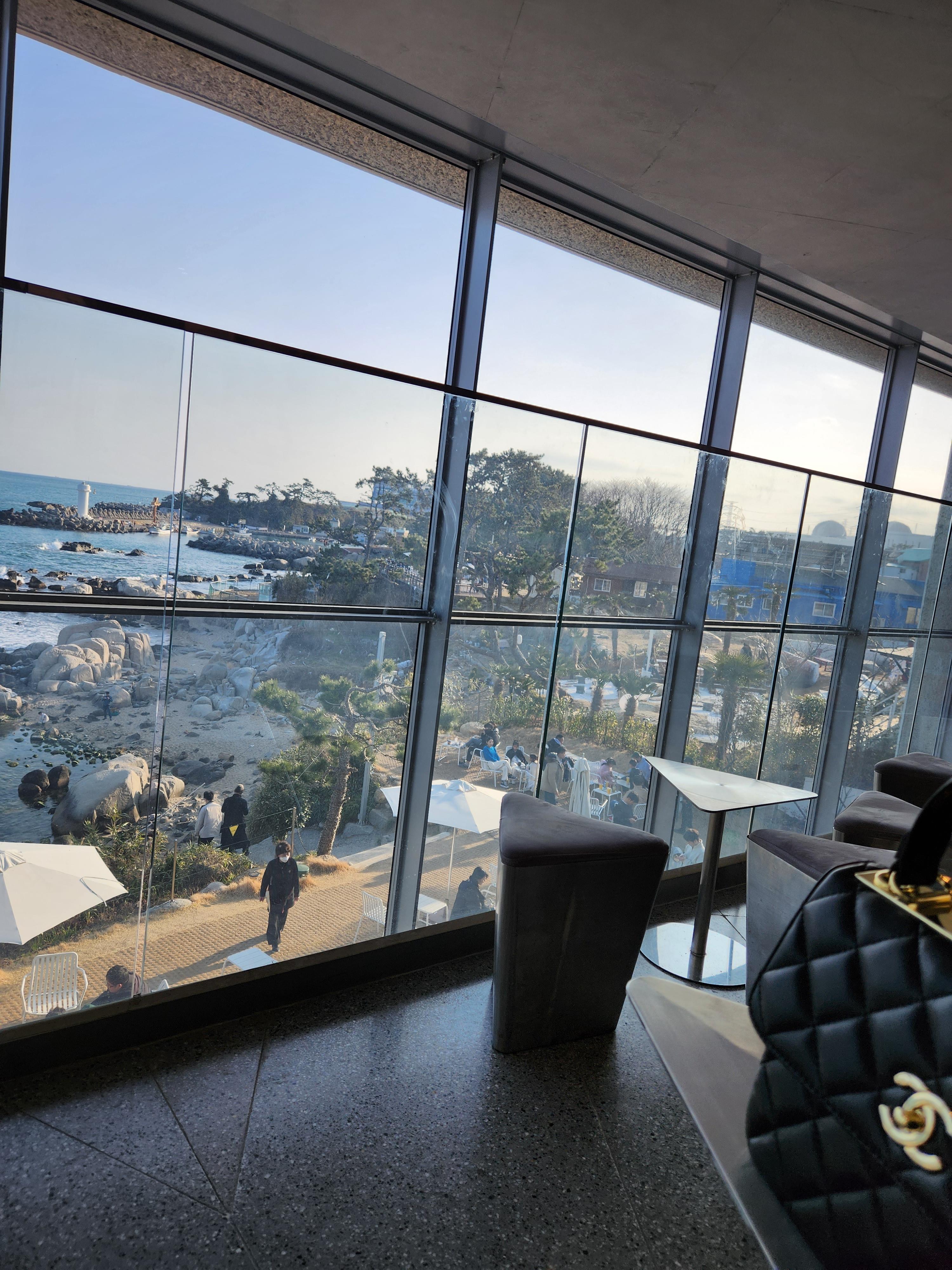 여기는 조망도 아름다운 편이지만, 통 큰 창이 뭔가 거추장스런 캠핑도구 없이도 충분히 글램핑이나 캠핑의 좋은 점만 취할 수 있는 카페같다고 할까요~ 바다멍은 옵션입니다 ㅎㅎ