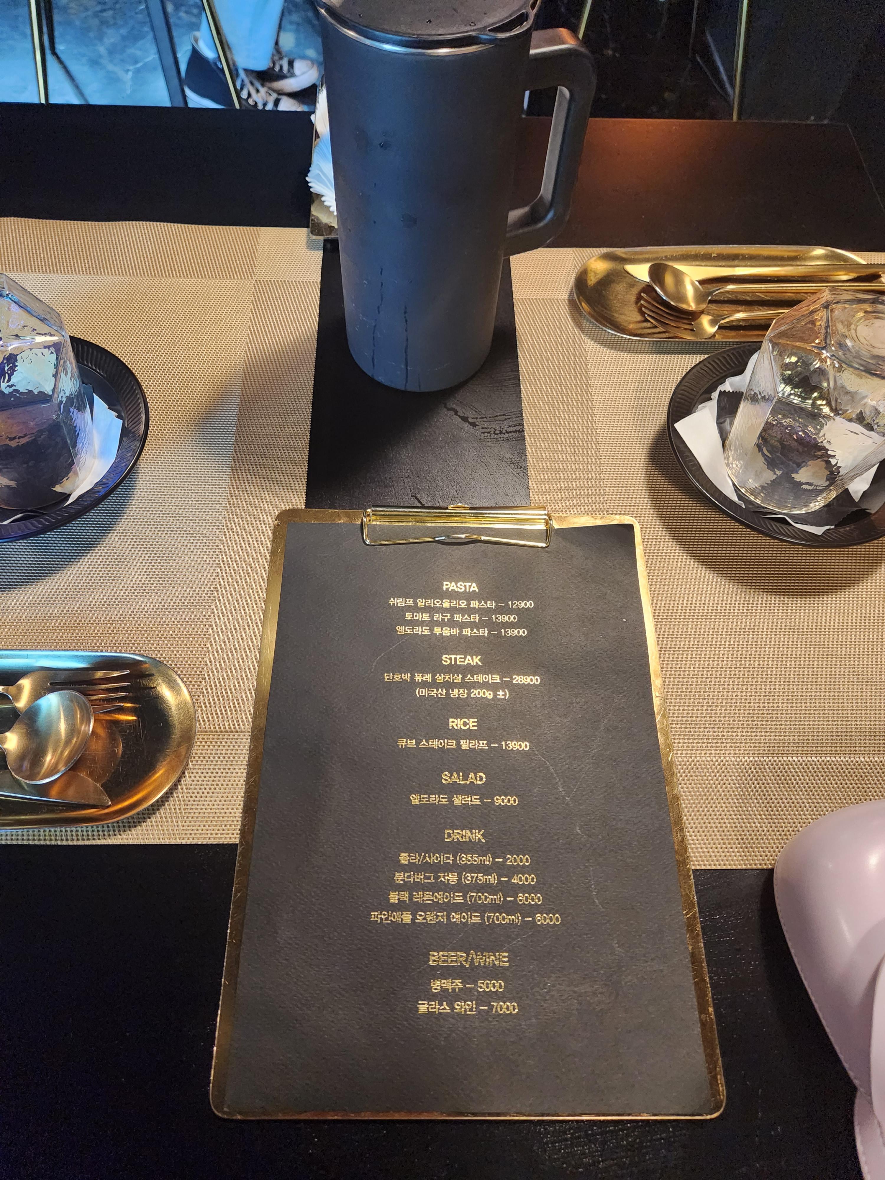 또 한 가지 당황했던건!! 가방 놓을 자리가 없는 ..ㅠㅠ 빈 의자도 부탁해서 가져다 달라고 했어야 했고 공간도 좁은데다 블랙 인테리어가 .. 흠.. ㅎㅎㅎㅎ