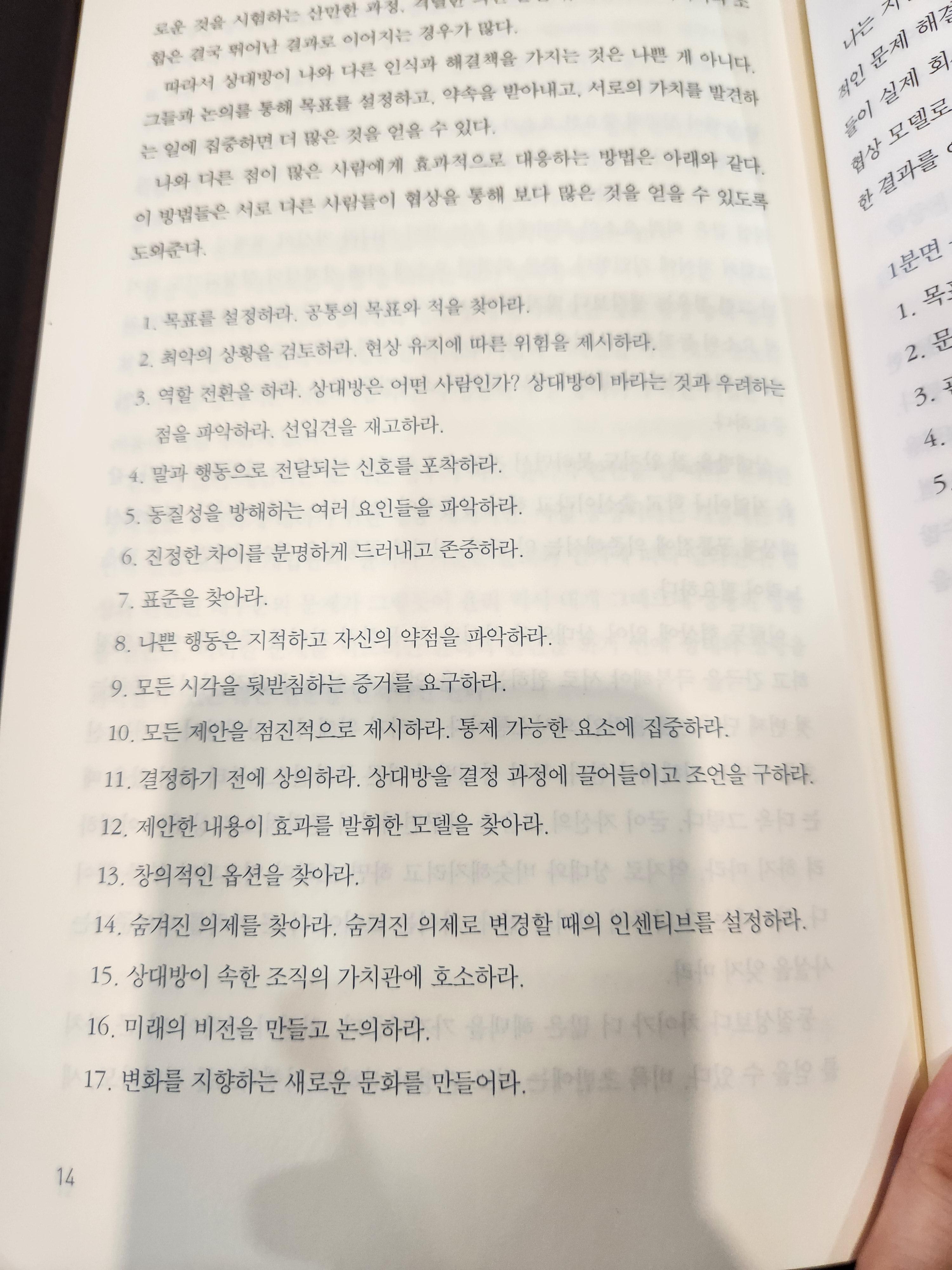 원하는 것을 얻는데는 때때로 상대의 나쁜 행동을 지적하고 주장을 뒷받침하는 증거를 '요구'할 용기가 필요한 것 같습니다. 또 눈에 들어온 건.. 상대방을 결정과정에 끌어들이고 조언을 구하라는 것!!! 같은 것을 바라보고 있다는 느낌을 서로 공유하는 부분도 .. +_+