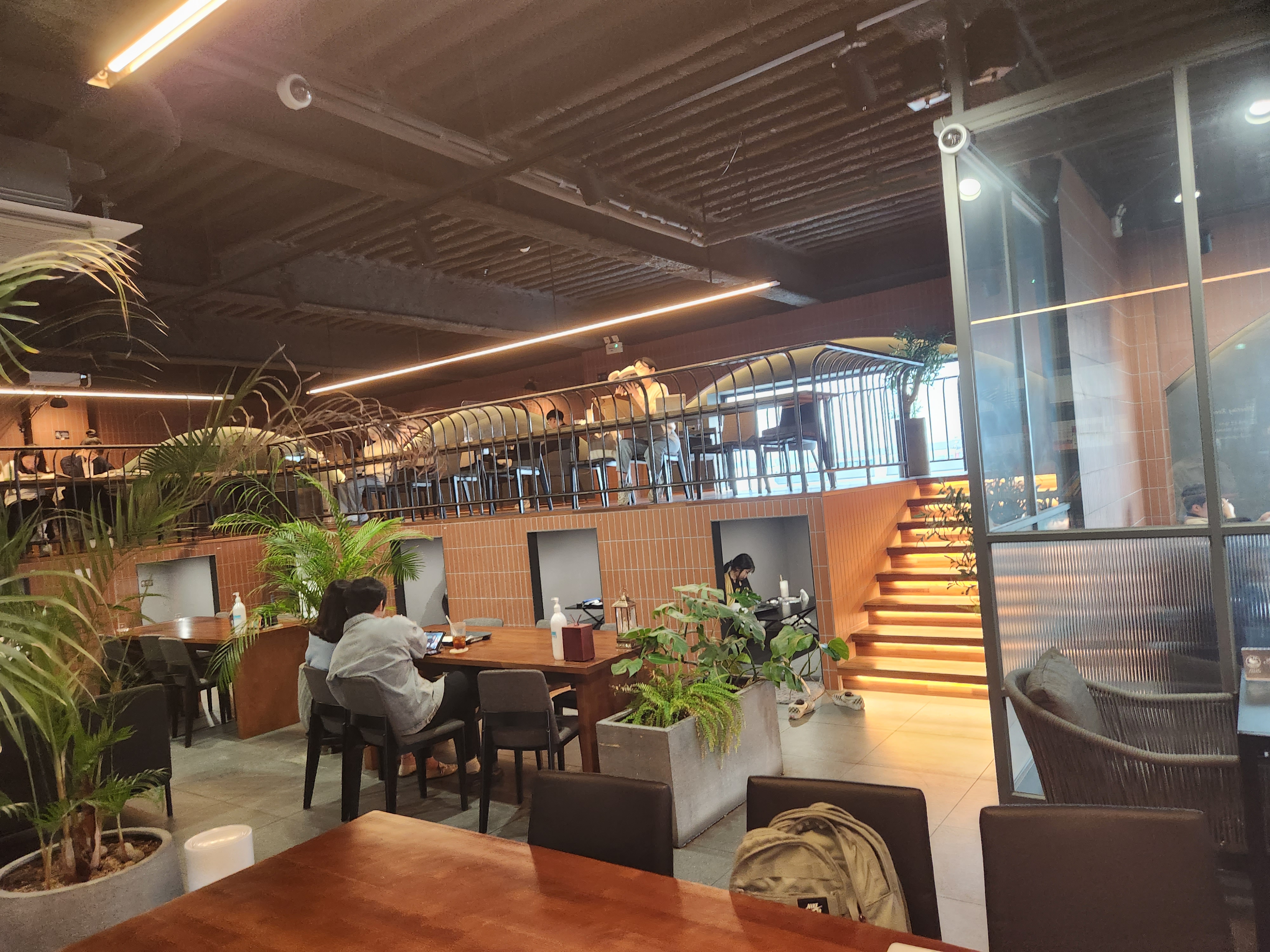 주문을 하고 들어서는데.. 테라스 뷰랑 전체적인 공간의 느낌이.. 호텔 라운지랄까요 꺅~!!