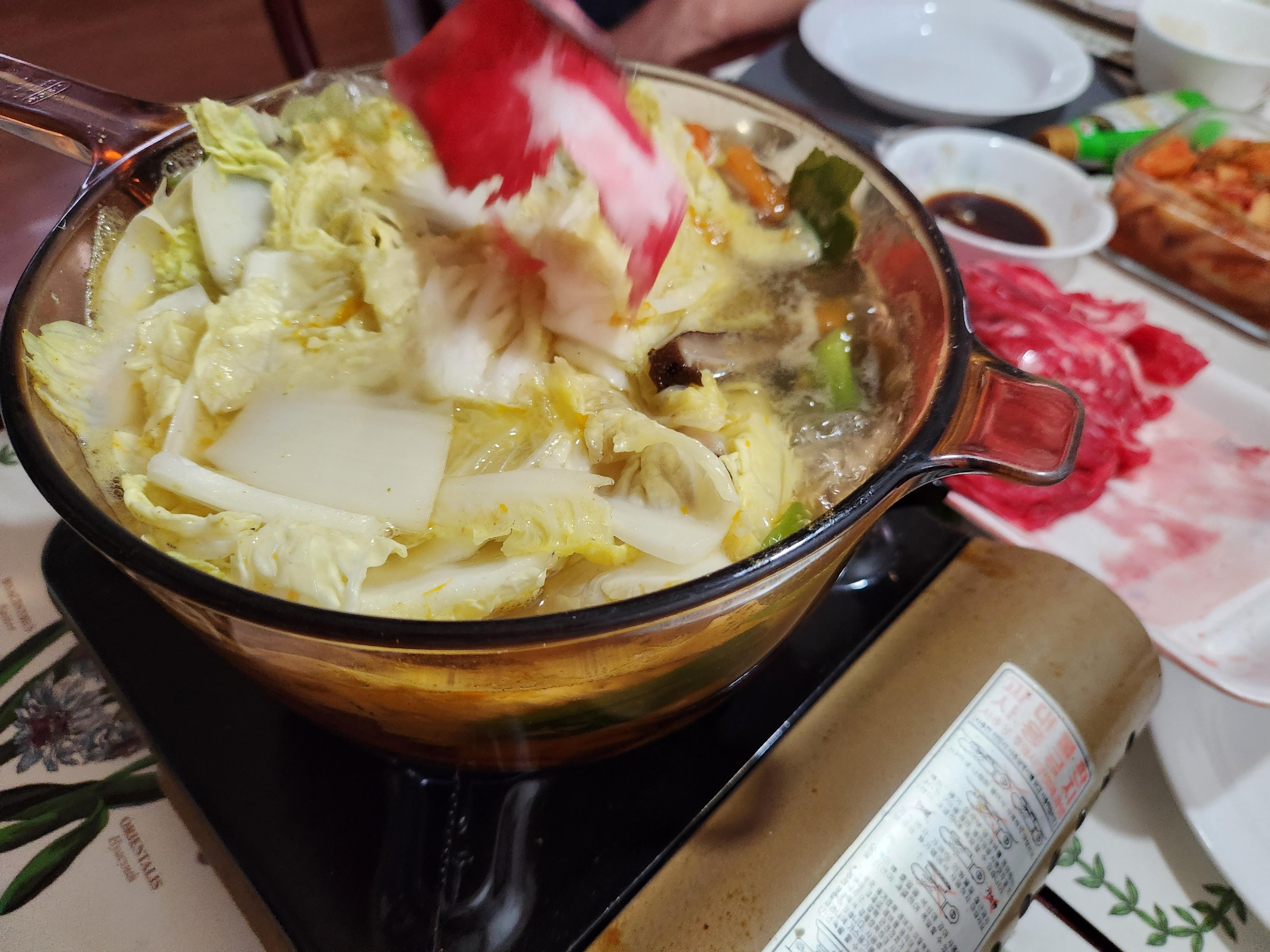 배추, 표고버섯, 양파, 단호박, 다시마, 멸치, 무 , 쇠고기 샤브샤브육수