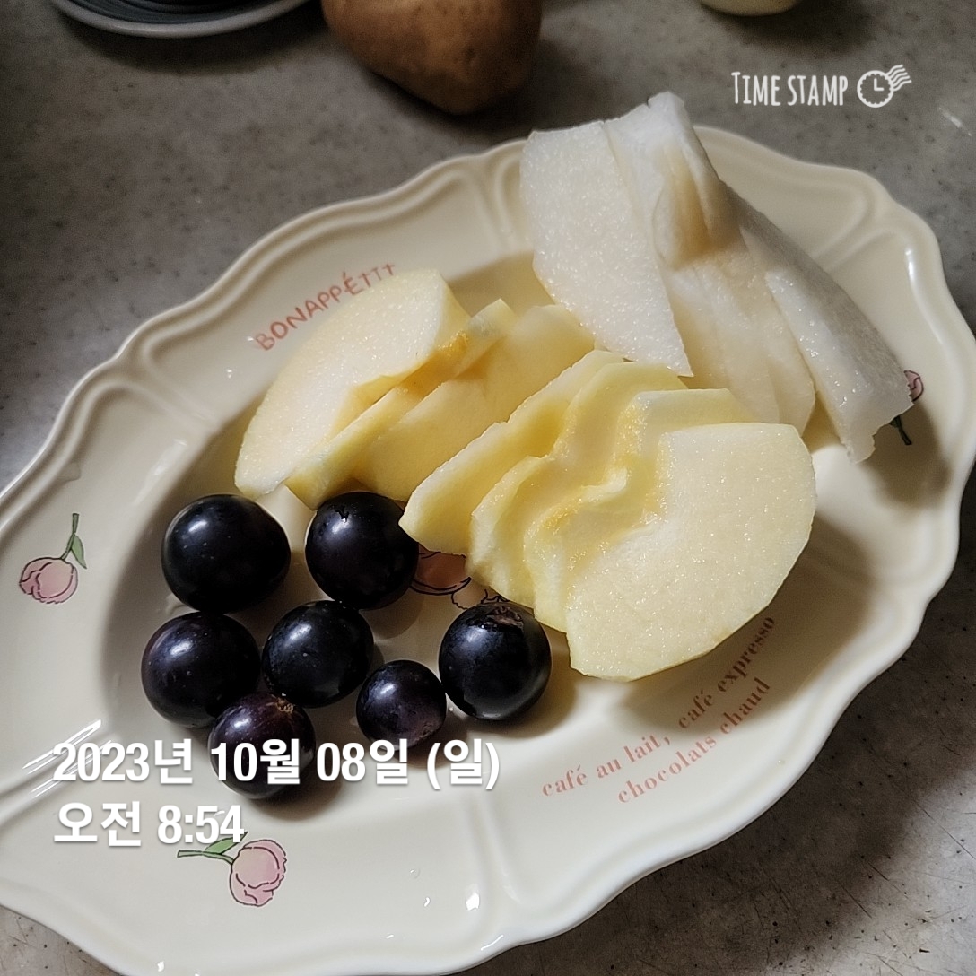 코코넛오일 풀링을 하고 첫끼를 준비한다. 포도, 사과, 배. 조금씩 껍질통째로 시도해보고픈 마음을 느끼면서 ㅋ
