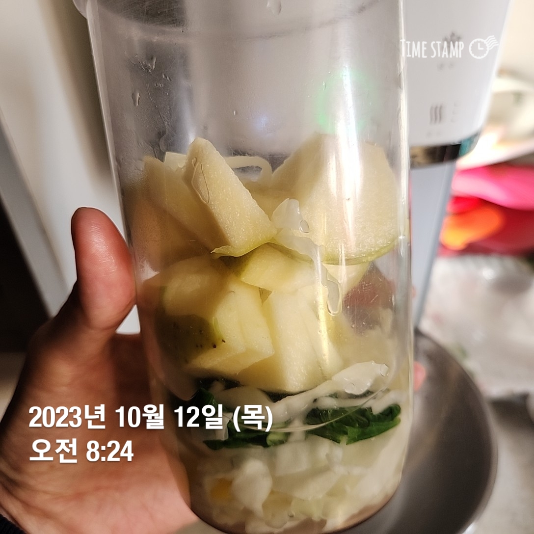 레몬 소량, 사과반개, 깻잎두장, 양배추 (모두 살짝 데침)**